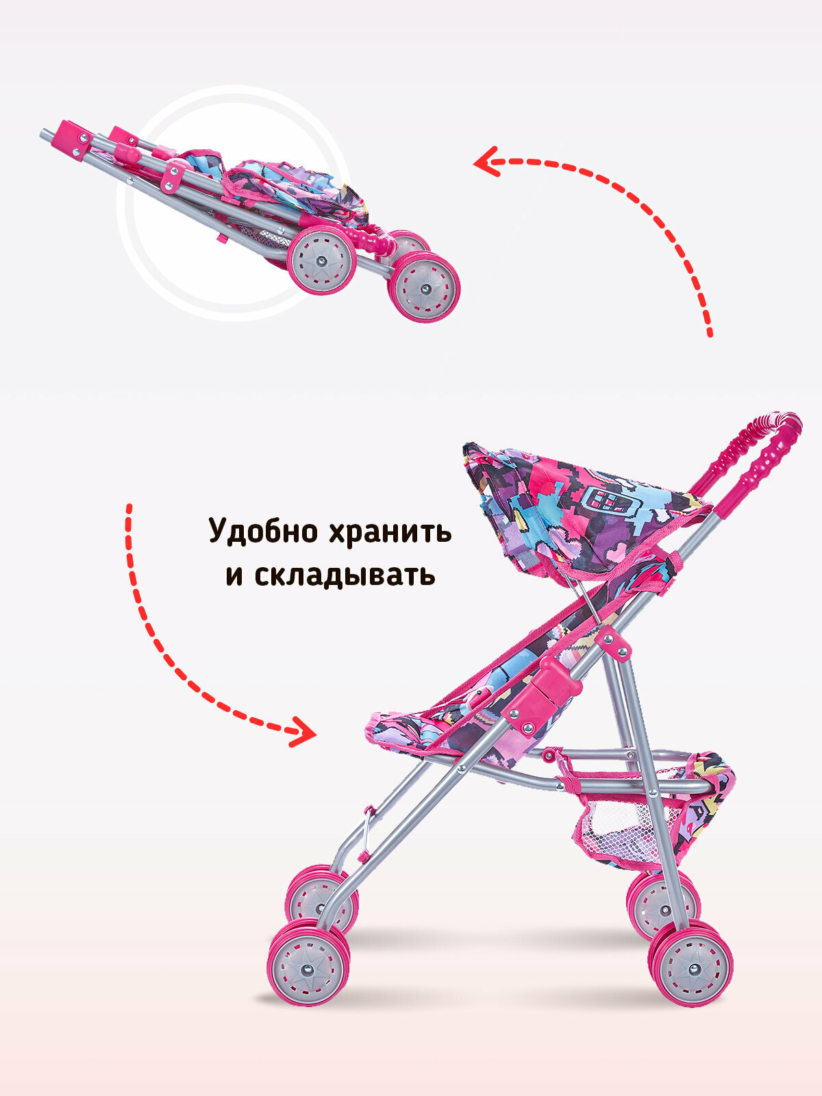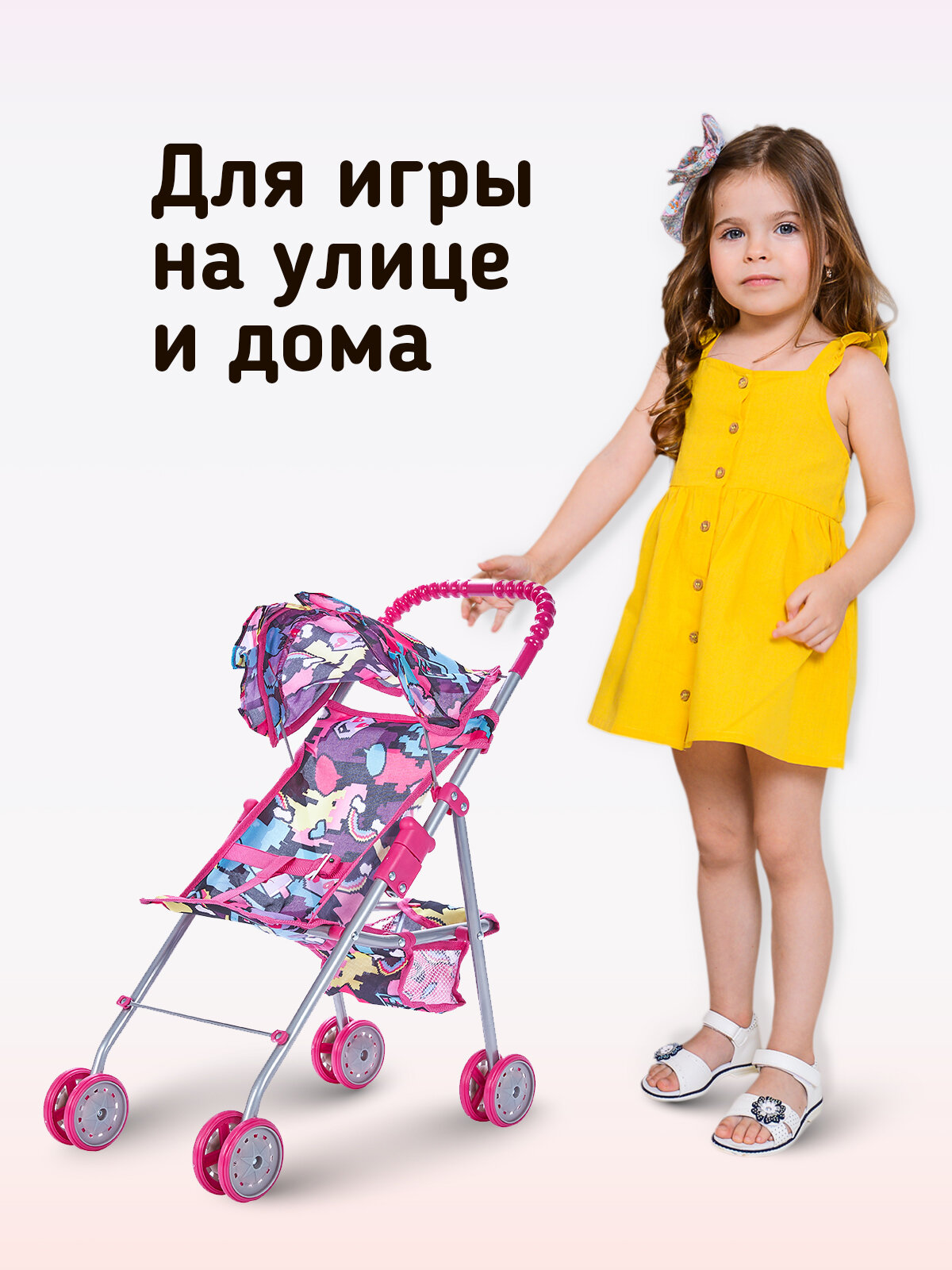 Детская игрушечная прогулочная коляска-трость Buggy Boom для кукол Mixy 8006 с козырьком и корзиной