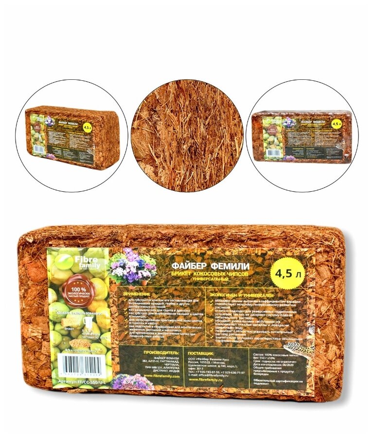 Субстрат Fibre Family брикет 4,5 л, Кокосовые чипсы 100% информация: