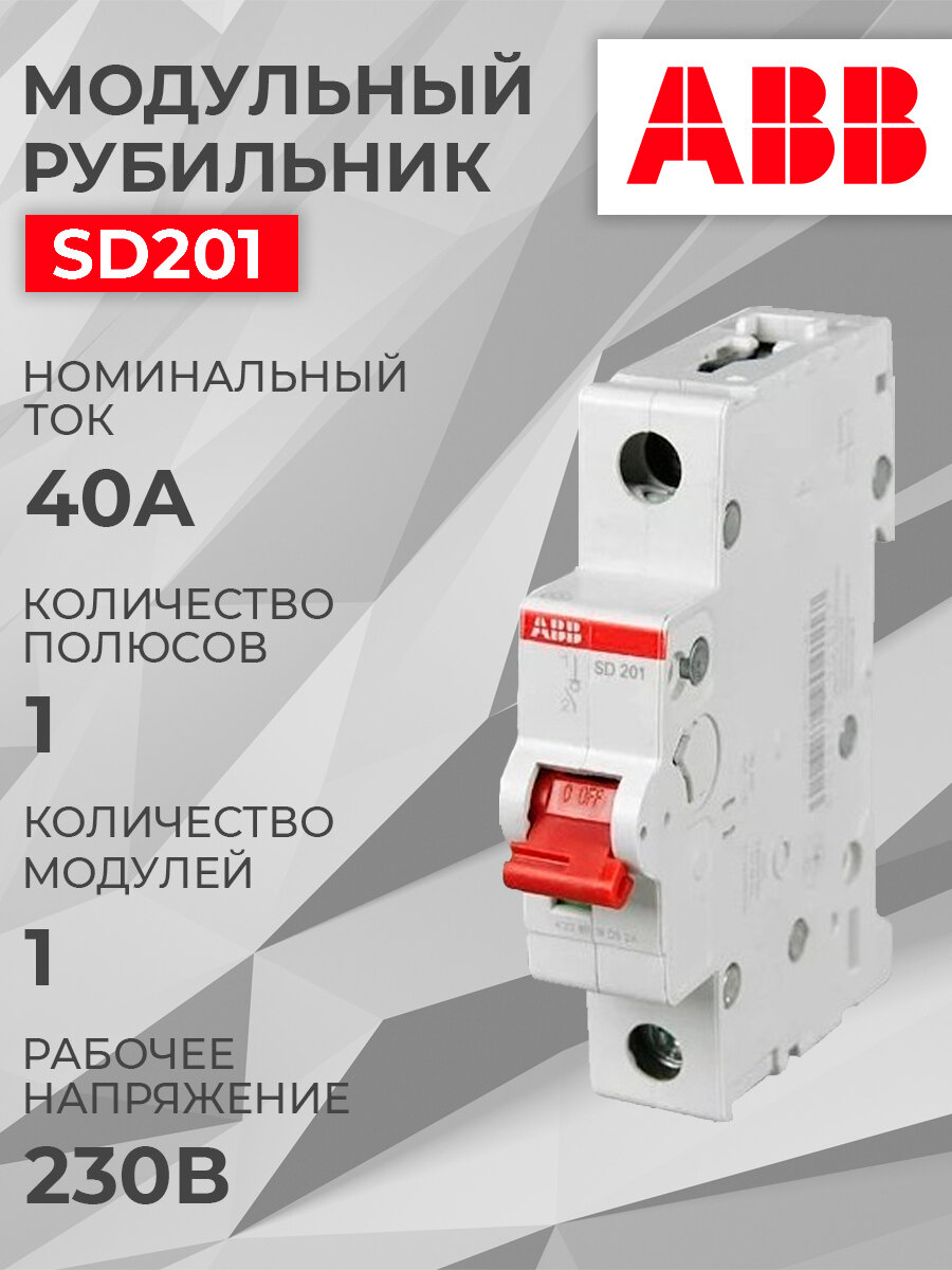 Рубильник модульный ABB 1-полюсный SD201/40 рычаг красный информация: