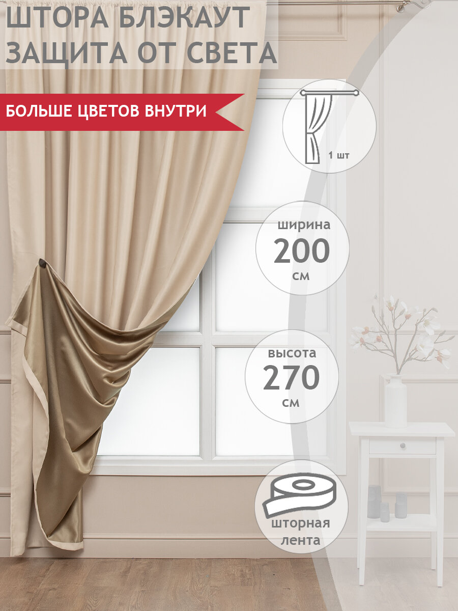 Отзывы на Штора Amore Mio Блэкаут 200х270 см, 1 шт, для гостиной, спальни, детской комнаты дома, длинная, на шторной ленте, готовая, однотонная, бежевая