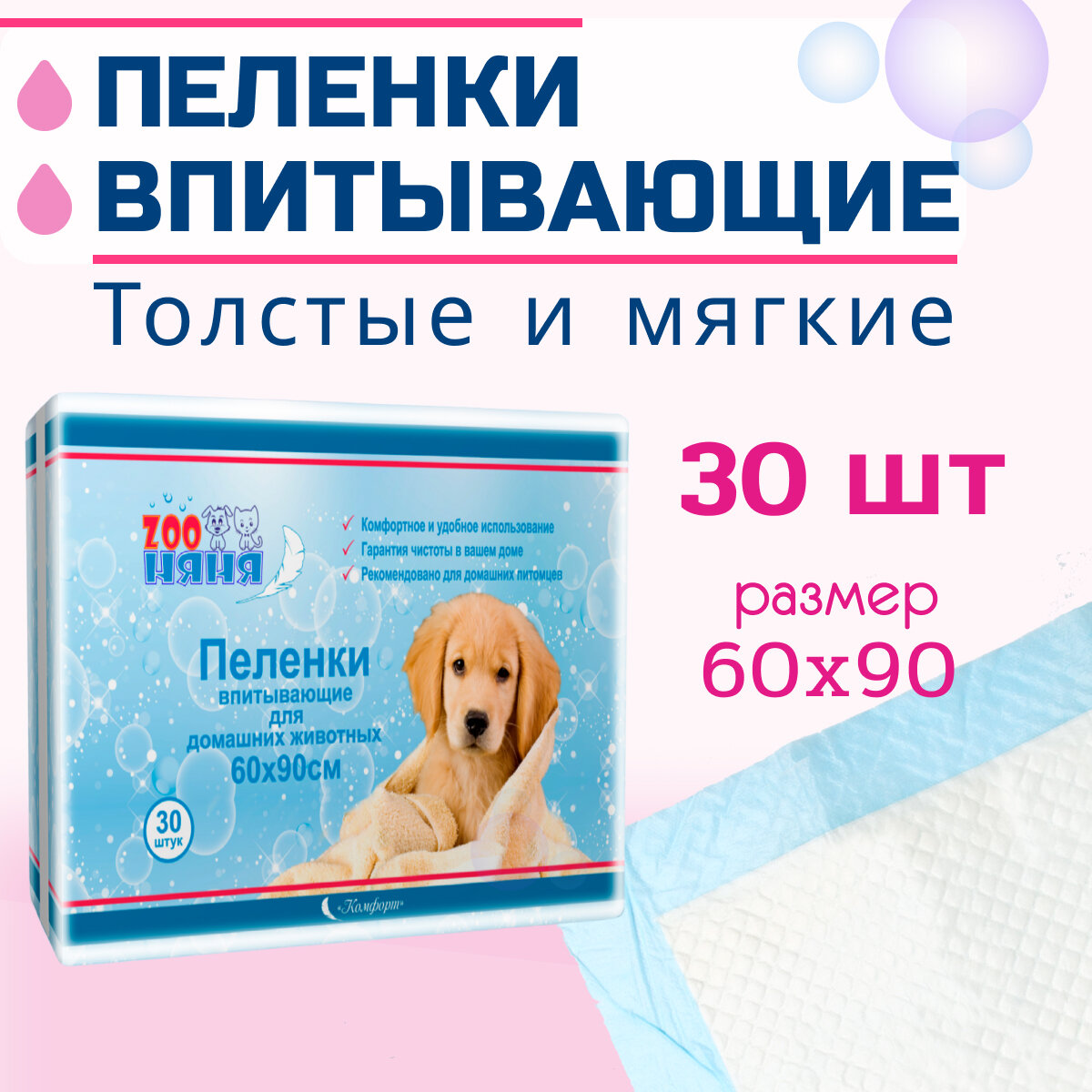 Впитывающие пеленки для собак и кошек Zoo Няня Комфорт, размер 60х90см., 30 шт.