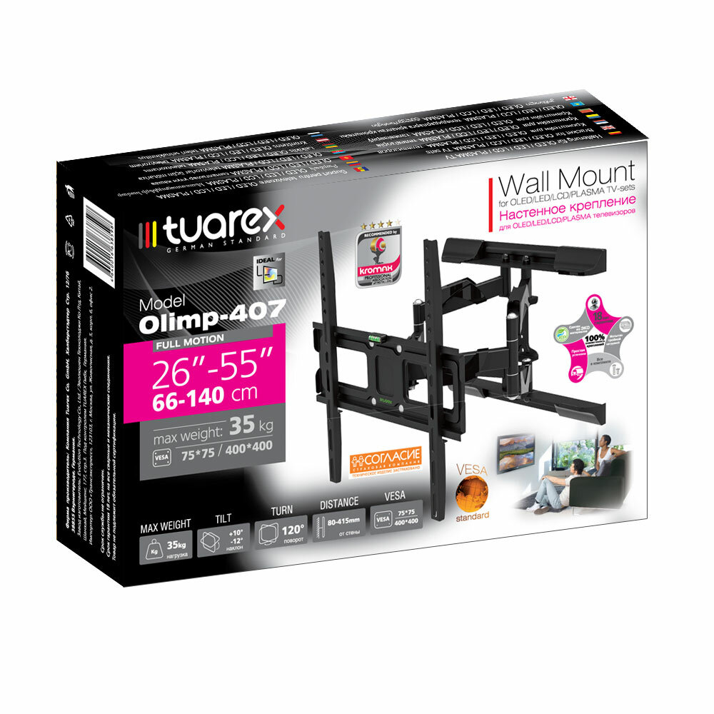 Отзывы на Кронштейн настенный для LED/LCD телевизоров TUAREX OLIMP-407 BLACK