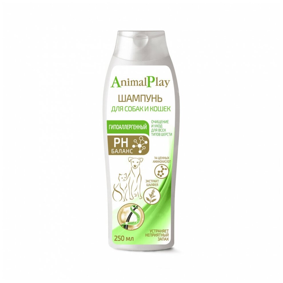 Шампунь -шампунь Animal Play гипоаллергенный с аминокислотами и экстрактом шалфея для кошек и собак , 250 мл информация: