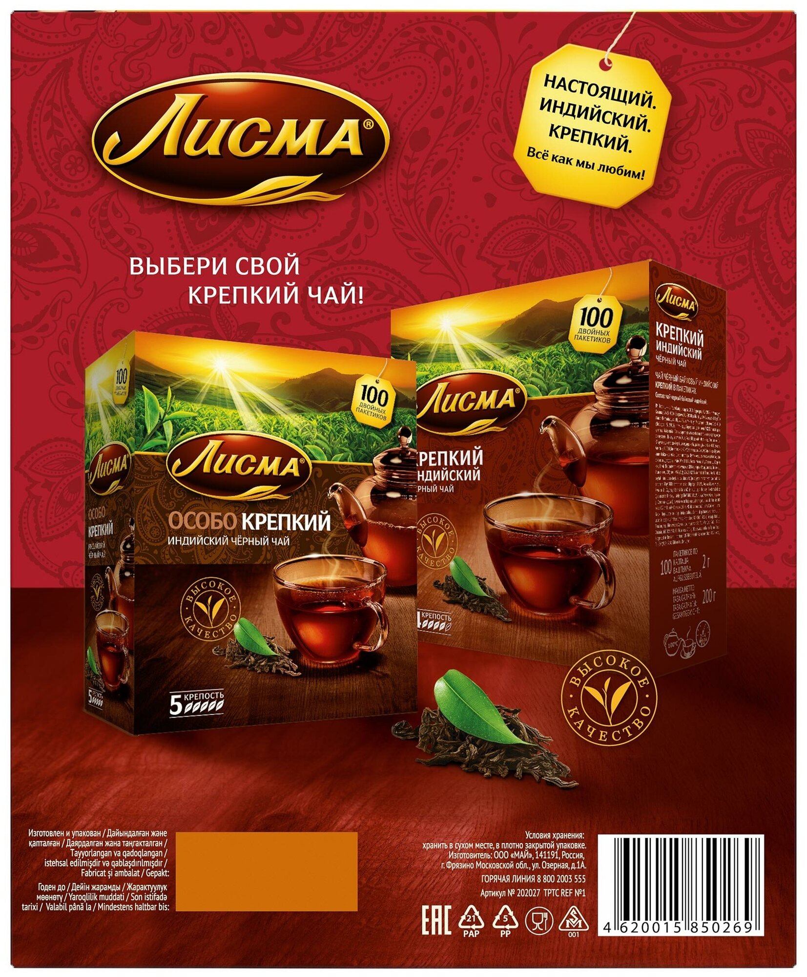 Чай Лисма 100 пак*2 г насыщенный черный информация: