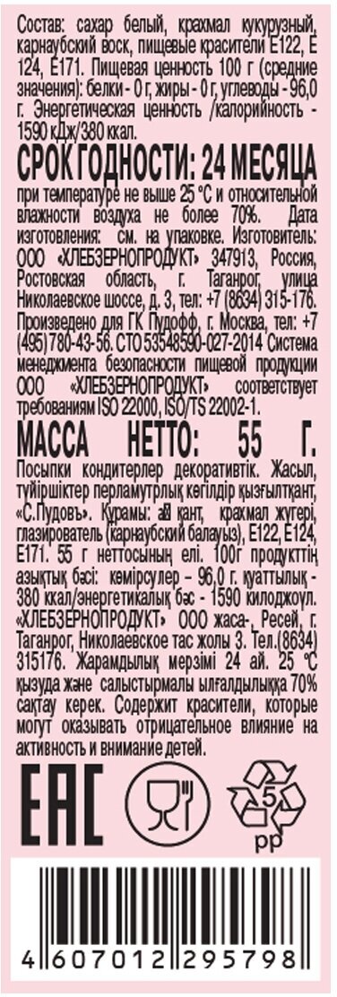 Посыпка Шарики розовые перламутровые С.Пудовъ, 55 г информация: