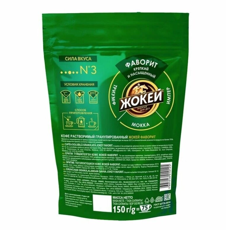 Кофе растворимый Жокей Фаворит грануллированный, пакет, 150 г информация: