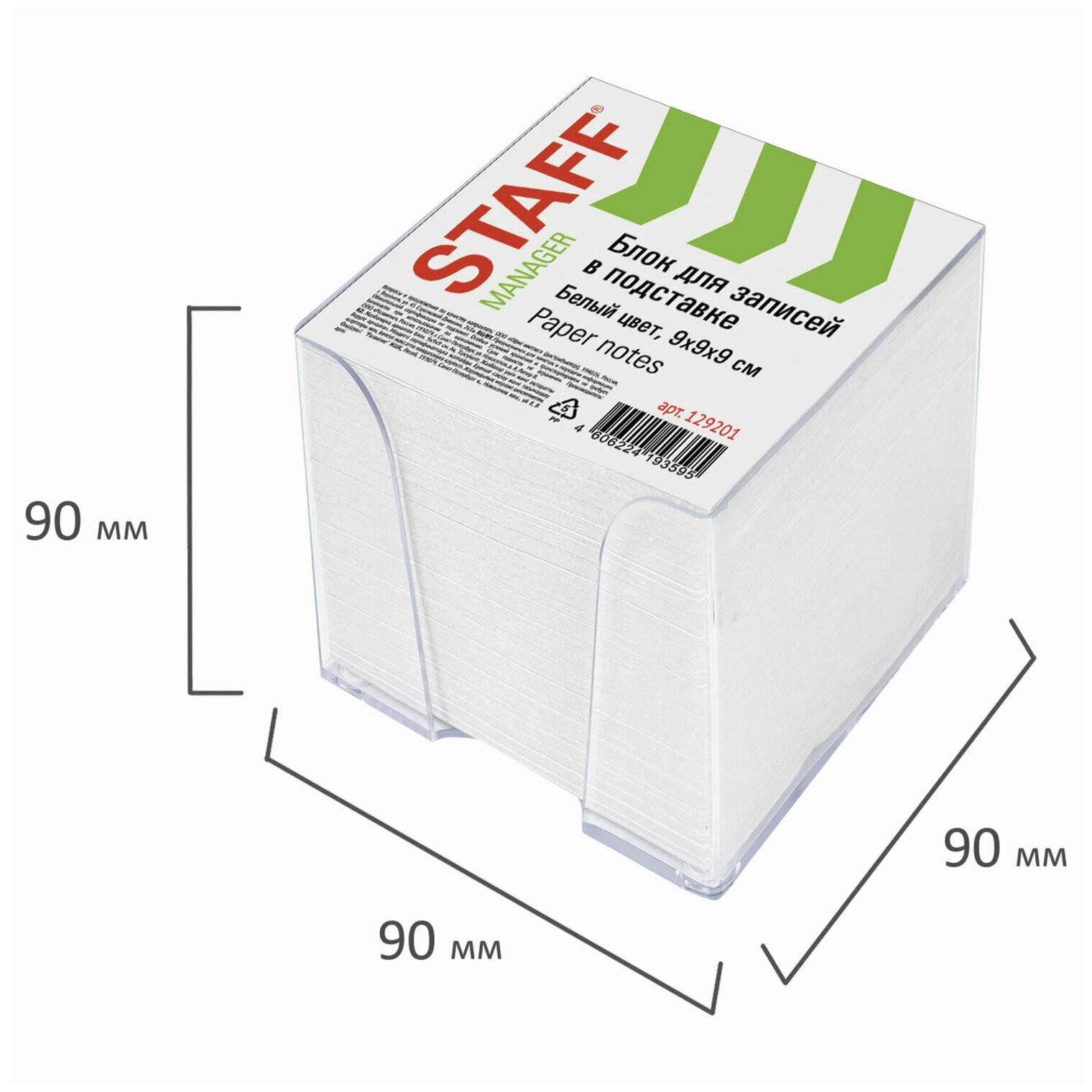 10 цен на STAFF Блок для записей в прозрачной подставке, 9х9х9 см (129201) белый 65 г/м²