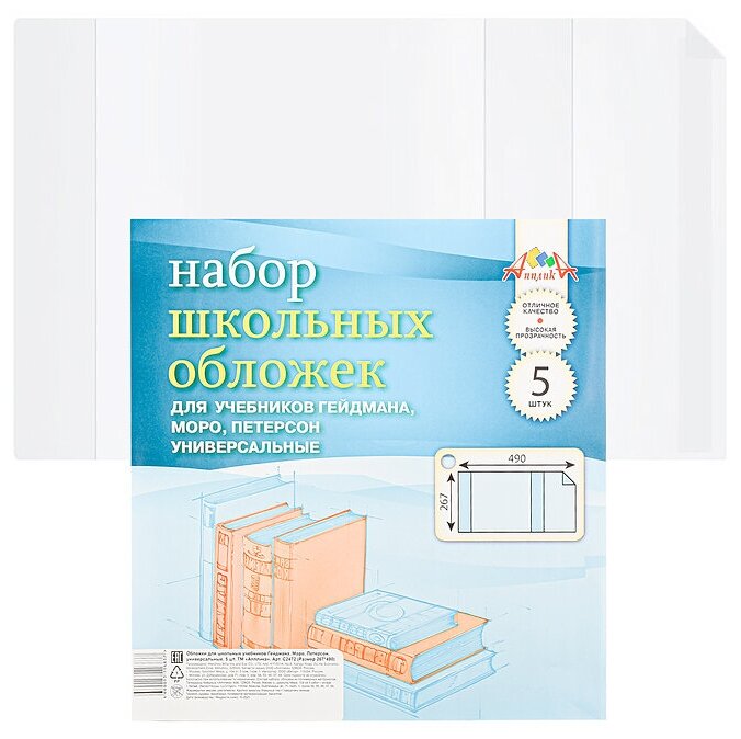 АппликА Набор обложек для учебников 110 мкм ( 267х490 мм) 5 шт. универсальные (Гейдмана,Моро,Петерсона) С2472 информация: