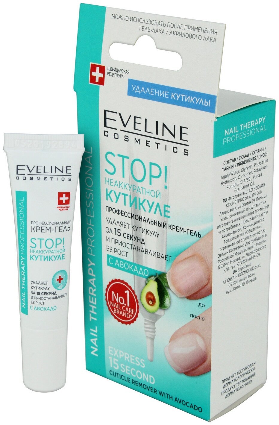 EVELINE Экспресс-удалитель кутикулы STOP! Неаккуратной кутикуле Nail Therapy Professional профессиональный крем-гель с авокадо, 12 мл
