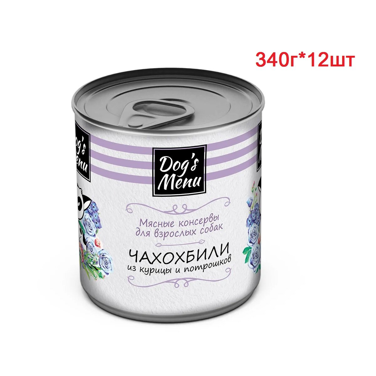 Dog`s Menu консервы для взрослых собак чахохбили из курицы и потрошков 340г*12шт