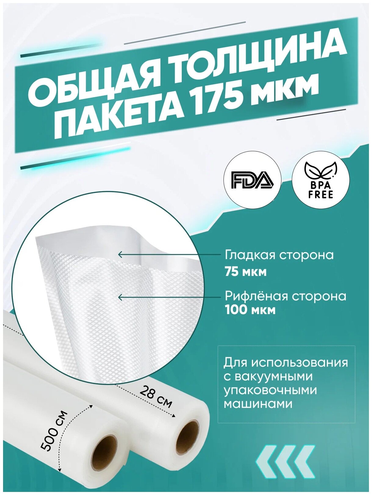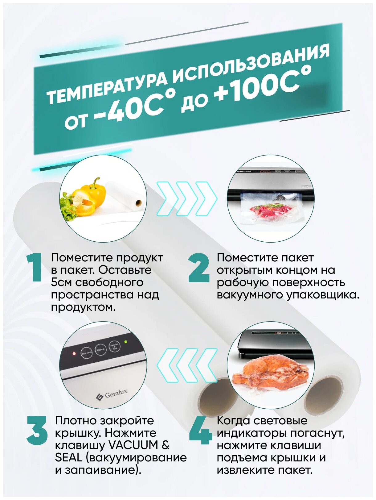 Пакеты для вакууматора Gemlux GL-VB28500-2R 28*500 (2 шт.) информация:
