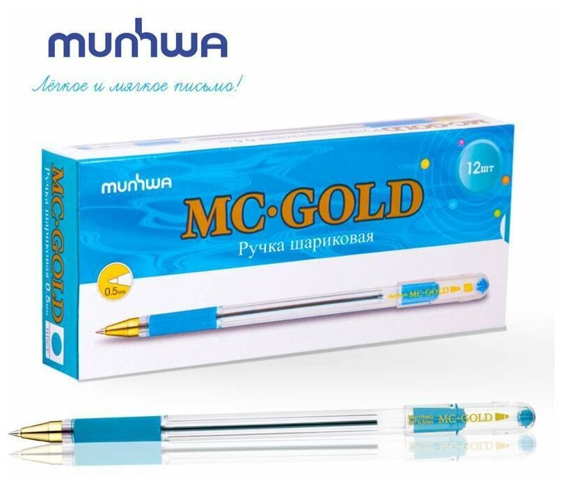 MunHwa Комплект ручек шариковых "MC Gold", голубая, 0,5 мм, грип (12 ручек в комплекте) (количество товаров в комплекте: 12)