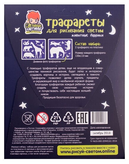 Трафарет для светового планшета Световые картины №2 Животные Африки