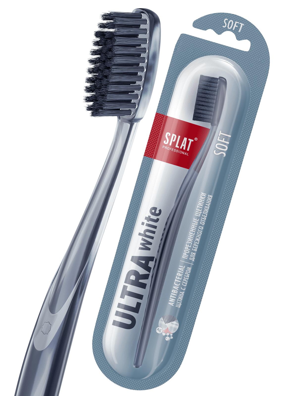 Инновационная зубная щетка SPLAT Professional ULTRA WHITE. Мягкая. (Серая) 207 ₽