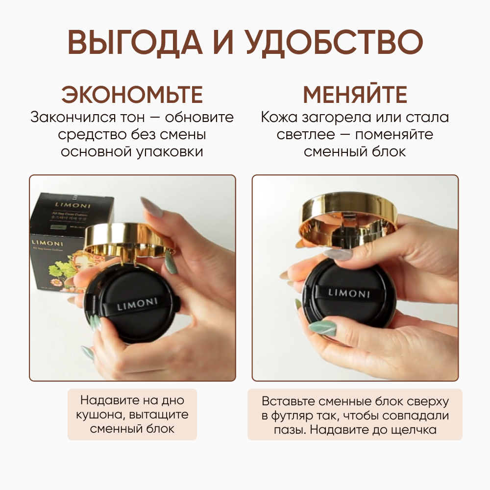LIMONI Тональный кушон для лица Корея All Stay Cover Cushion SPF 35 / PA++ Galaxy 02 Medium BB 3 672 ₽