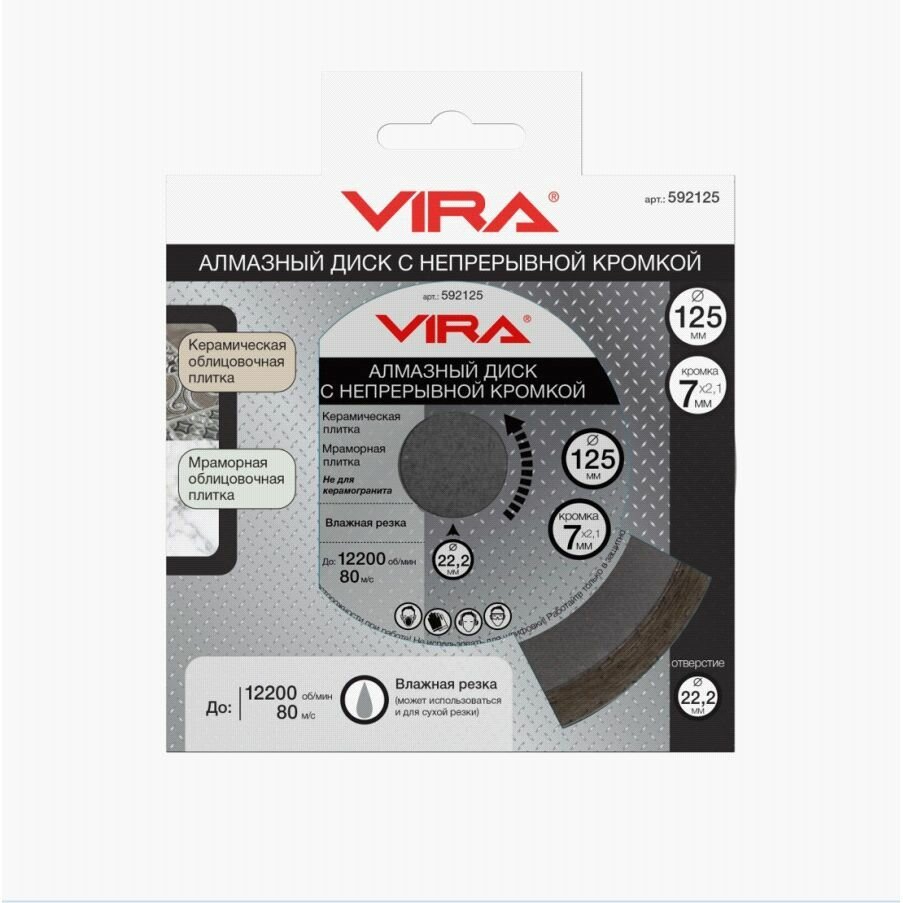 Диск алмазный 125 х 22.23 сплошной VIRA информация: