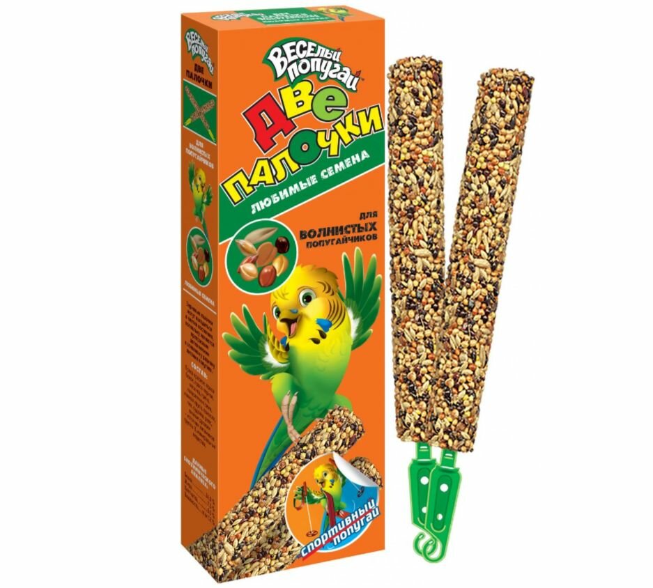 Веселый попугай Лакомство Две палочки Любимые семена для волнистых попугаев, 70 г информация: