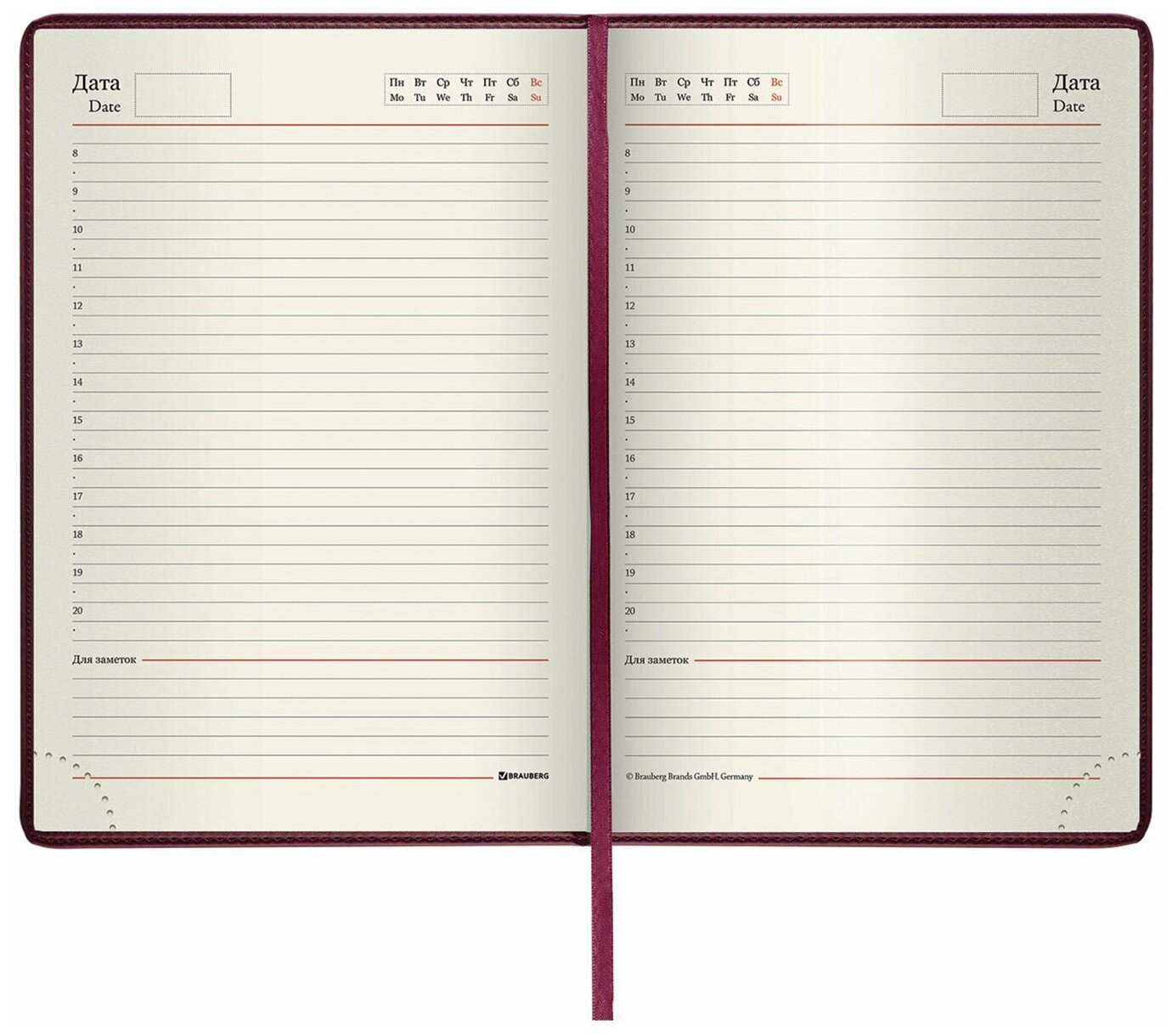 Ежедневник-планер (планинг) / записная книжка / блокнот недатированный формат А5 138х213мм под гладкую кожу, Brauberg Imperial, 160 листов, кремовый блок, бордовый