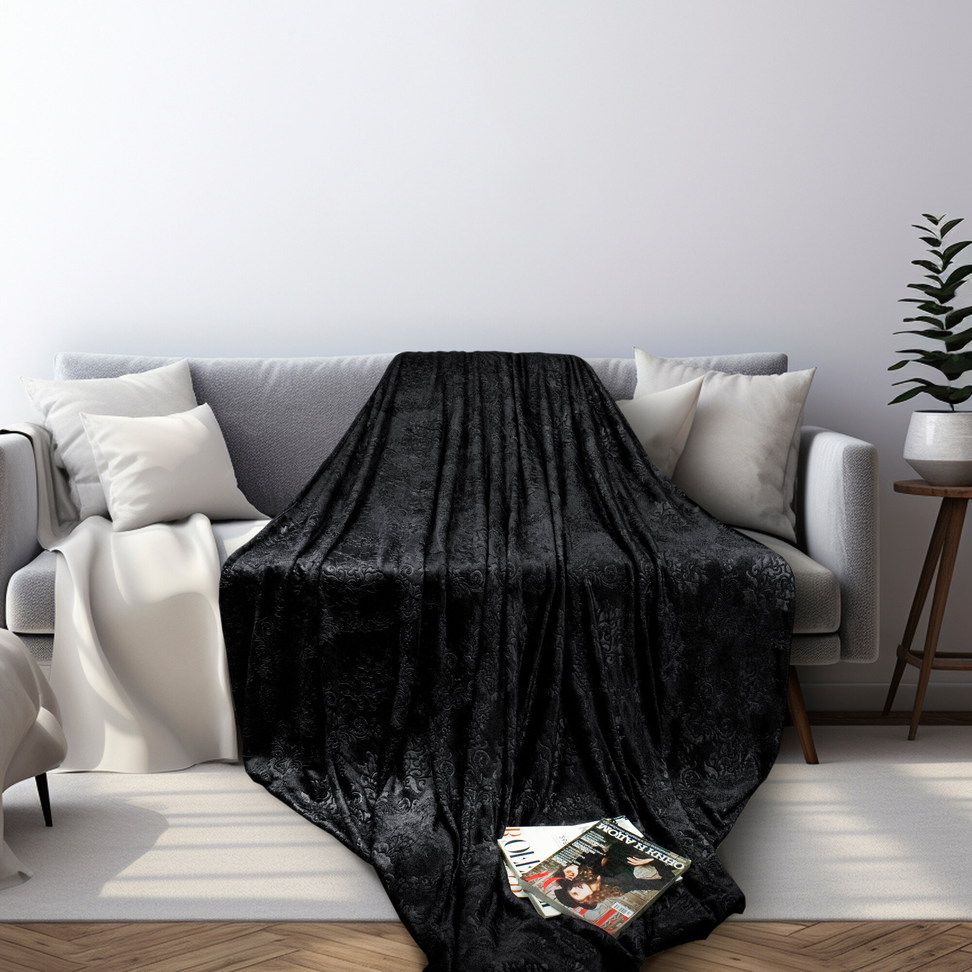 Плед двуспальный евро 200х220 черный, покрывало на кровать и диван Cleo Parma, пушистый с рисунком, велсофт 2 054 ₽