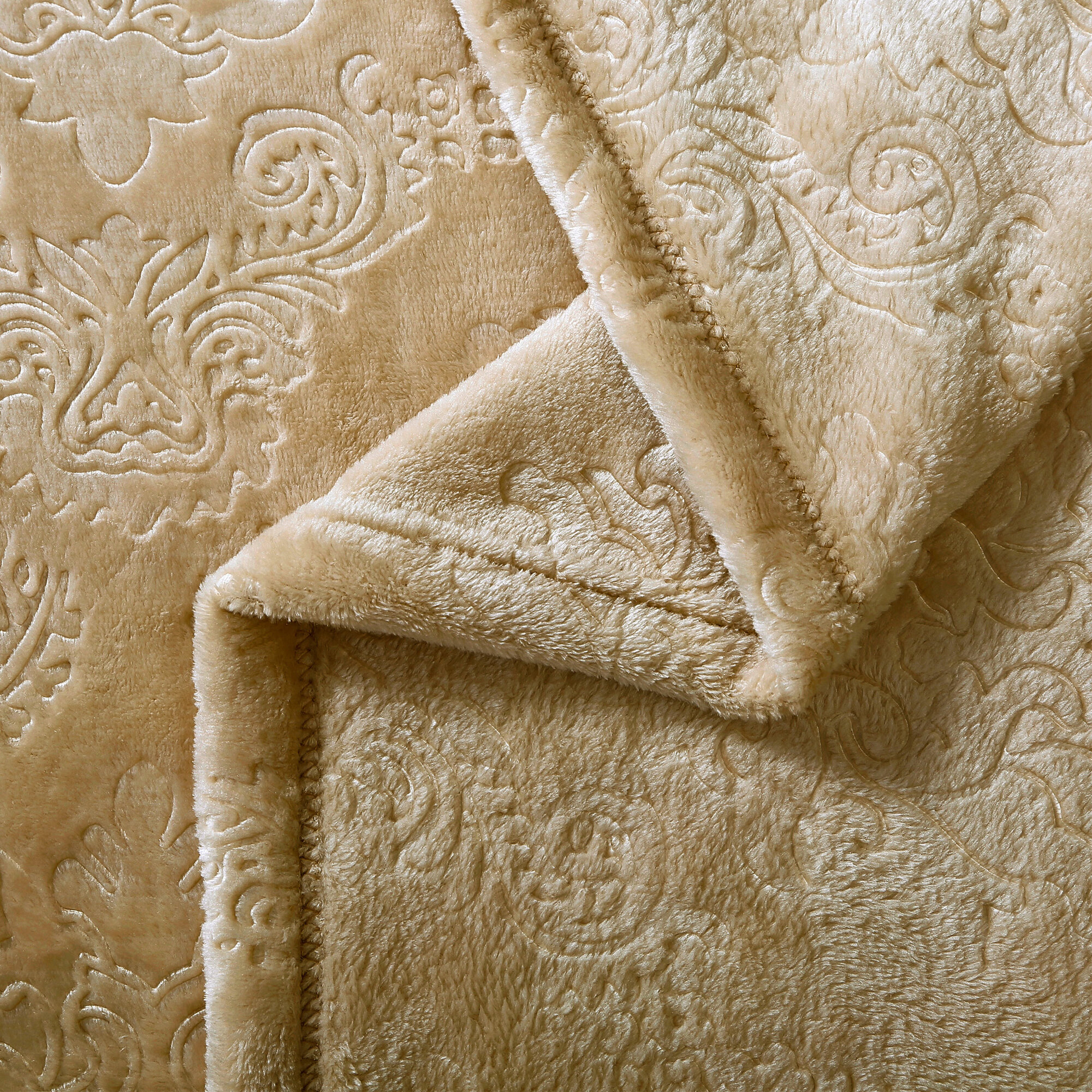 Плед двуспальный евро 200х220 песочный беж, покрывало на кровать и диван Cleo Parma, пушистый с рисунком, велсофт 1 192 ₽