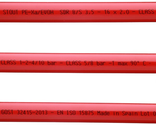 Труба из сшитого полиэтилена PE-Xa Stout (SPX-0002-001620) 16 х 2,0 мм для теплого пола PN10 красная
