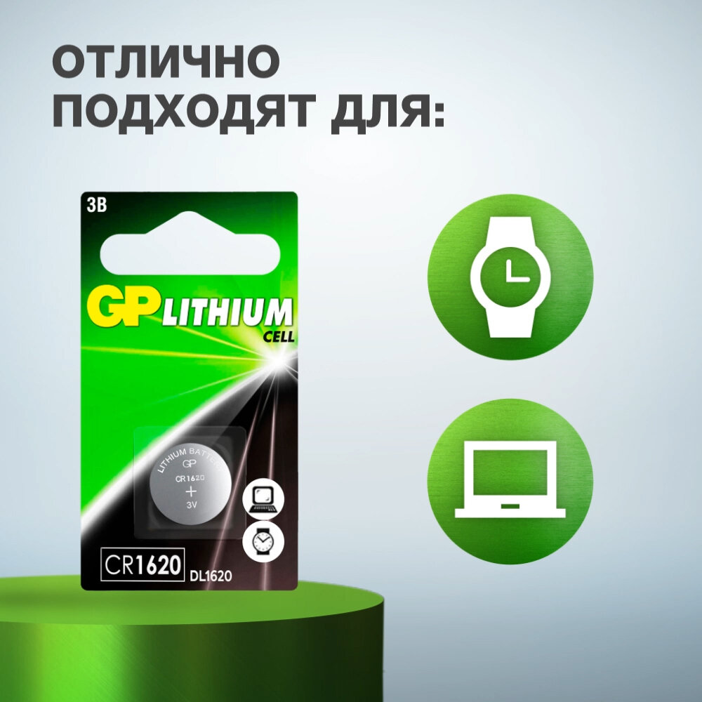 10 цен на Батарейка GP Lithium CR1620 (3 В) литиевая (блистер, 1шт.) (CR1620-7C1)