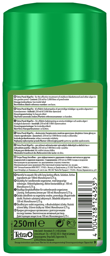 Препарат Tetra Pond AlgoFin 250 мл, против сине-зелёных водорослей и ряски информация: