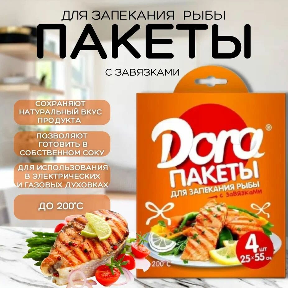 10 цен на DORA Пакеты для запекания с завязками, для рыбы, 25 х 55 см, 4 шт в уп
