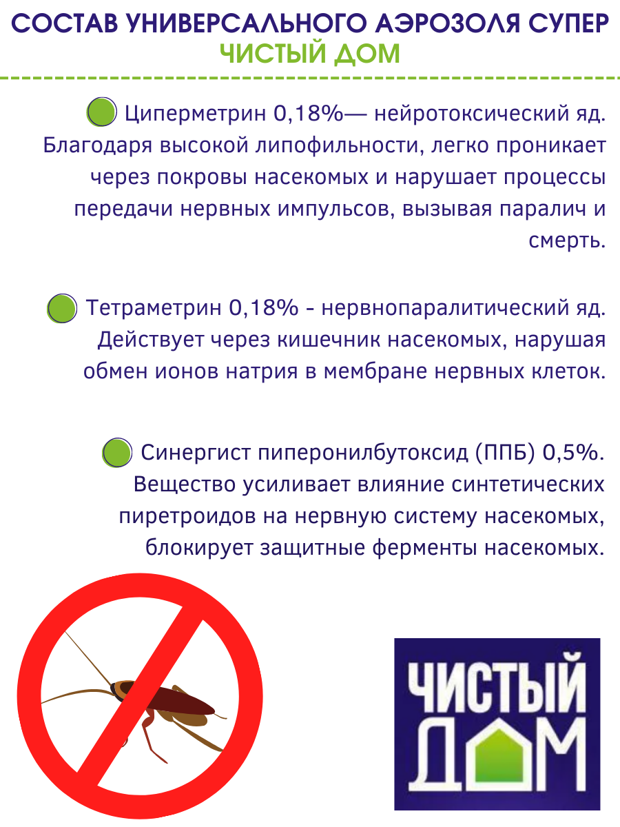 Чистый дом Аэрозоль от насекомых Чистый дом супер Универсальный двойное распыление 600 мл
