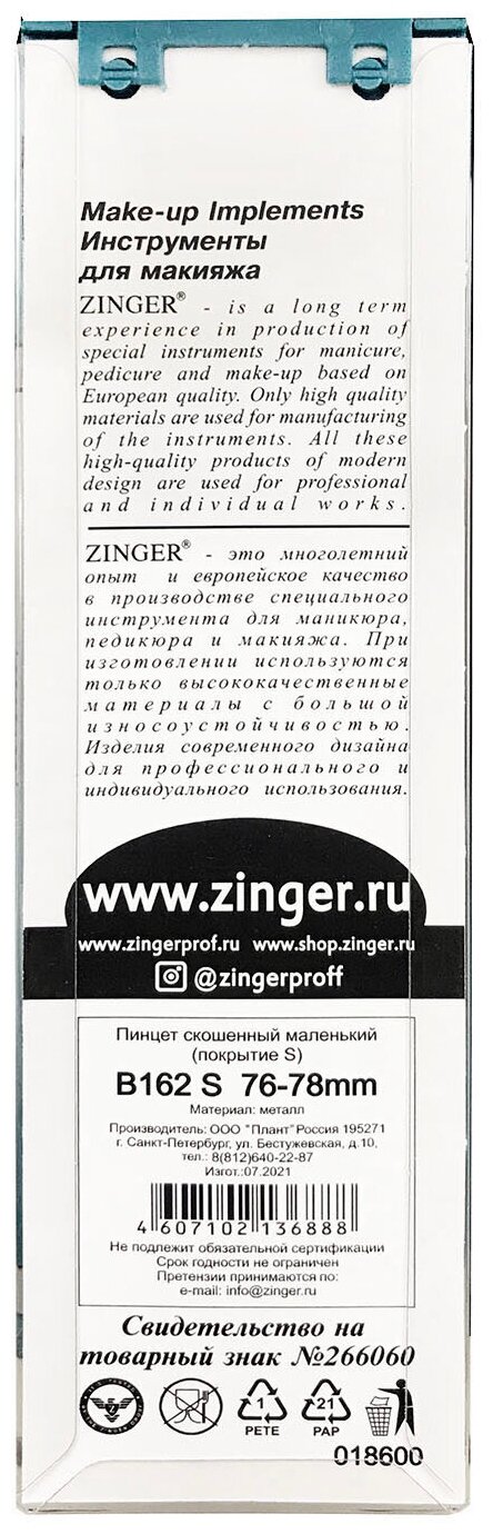 Пинцет Zinger рифленый скошенный 12902 информация:
