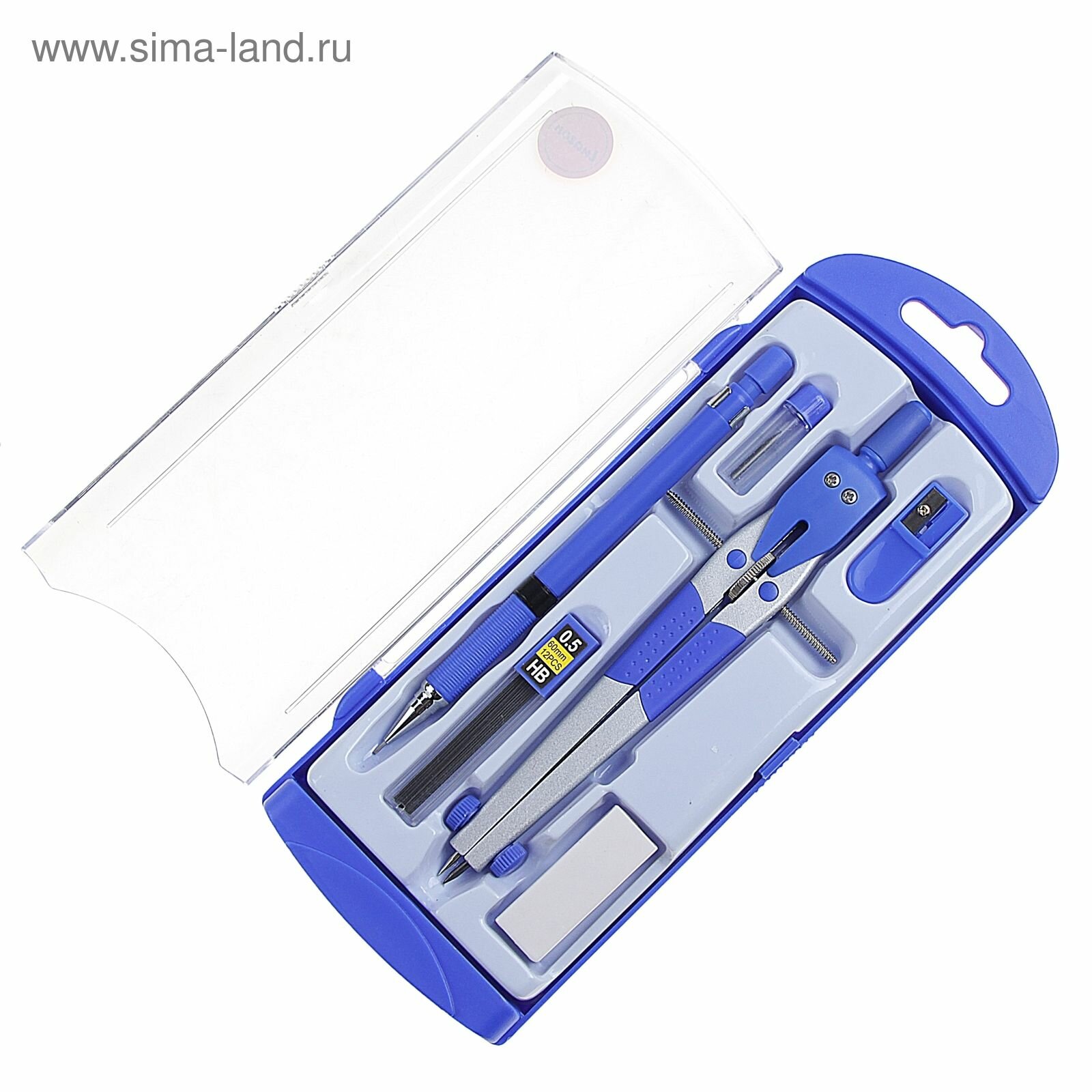 10 цен на Готовальня, 6 предметов (циркуль, точилка, грифель, ластик, карандаш механический 0,5 мм, грифель НВ 0,5 мм) в пластиковом пенале