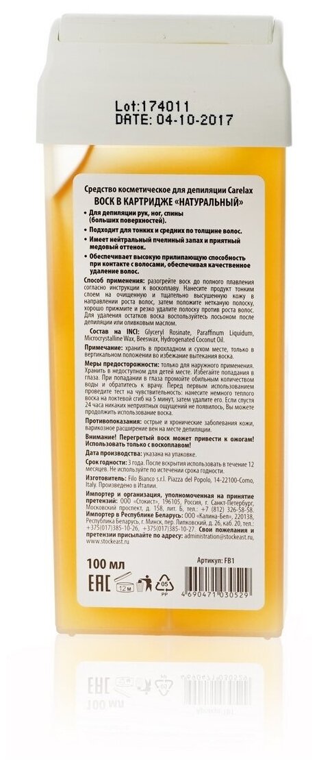 Carelax Воск в картриджах Carelax «Натуральный», 100 мл информация: