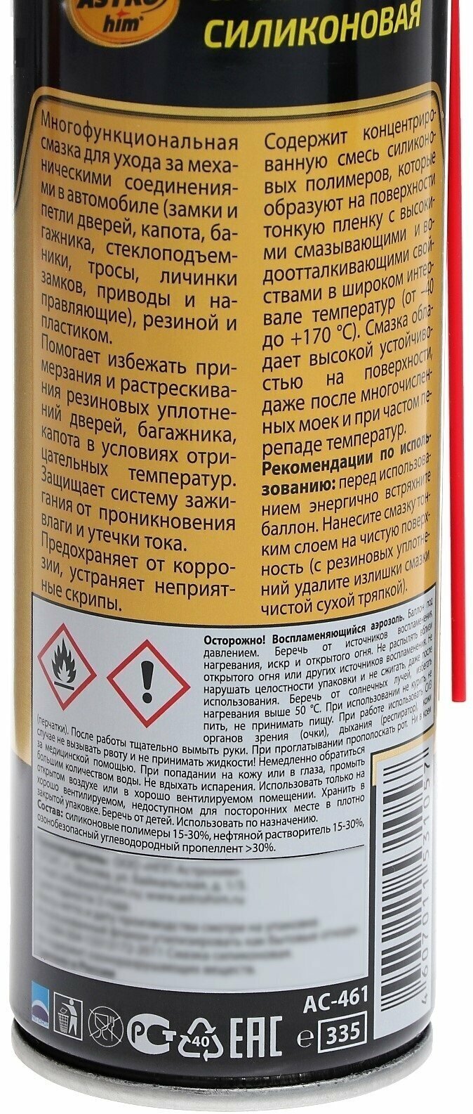 Силиконовая смазка Astrohim, 335 мл, аэрозоль, АС - 461 информация: