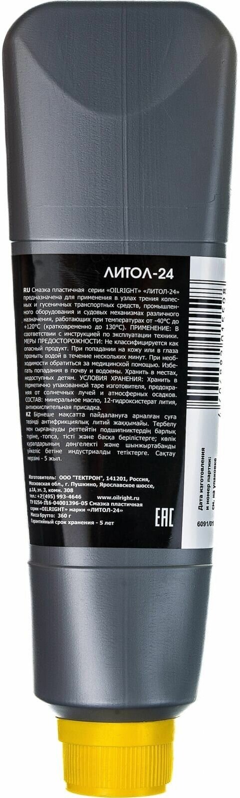Смазка Литол-24 OIL RIGHT 360 гр. информация: