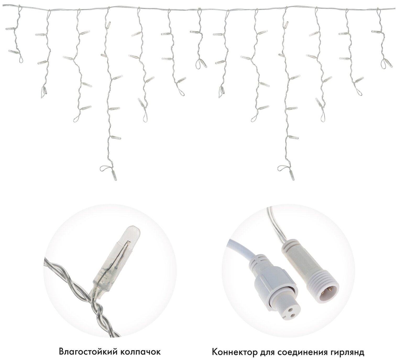 Гирлянда светодиодная Бахрома (Айсикл), 2,4х0,6м, 88 LED белый, белый ПВХ, IP65, постоянное свечение, 230В NEON-NIGHT (шнур питания в комплекте) 1 шт арт. 255-034