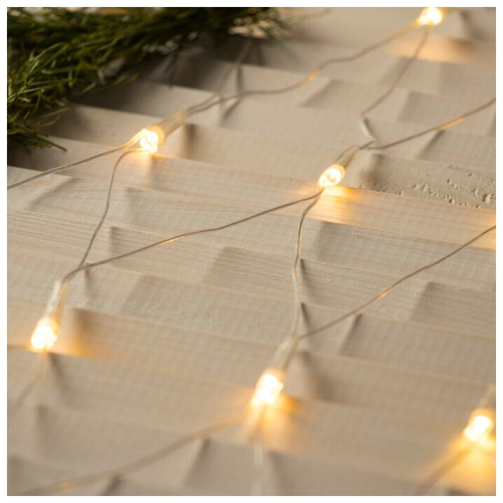 Гирлянда «Сеть» 1.6 × 1.6 м, IP20, прозрачная нить, 144 LED, свечение тёплое белое, 8 режимов, 220 В