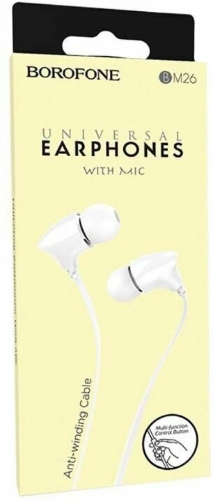 10 цен на Наушники Borofone BM26 Rhythm, вкладыши, микрофон, Jack 3.5 мм, кабель 1.2 м, белые