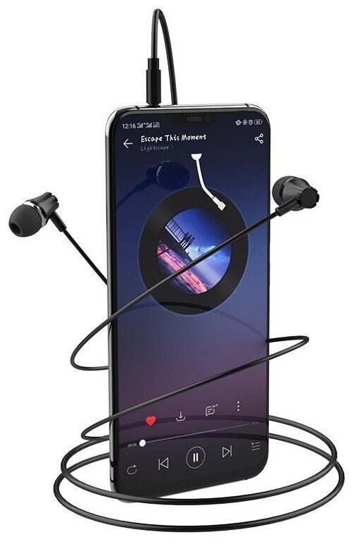 Проводные наушники BOROFONE BM21 Graceful, Jack 3.5mm, 1.2 м, черный