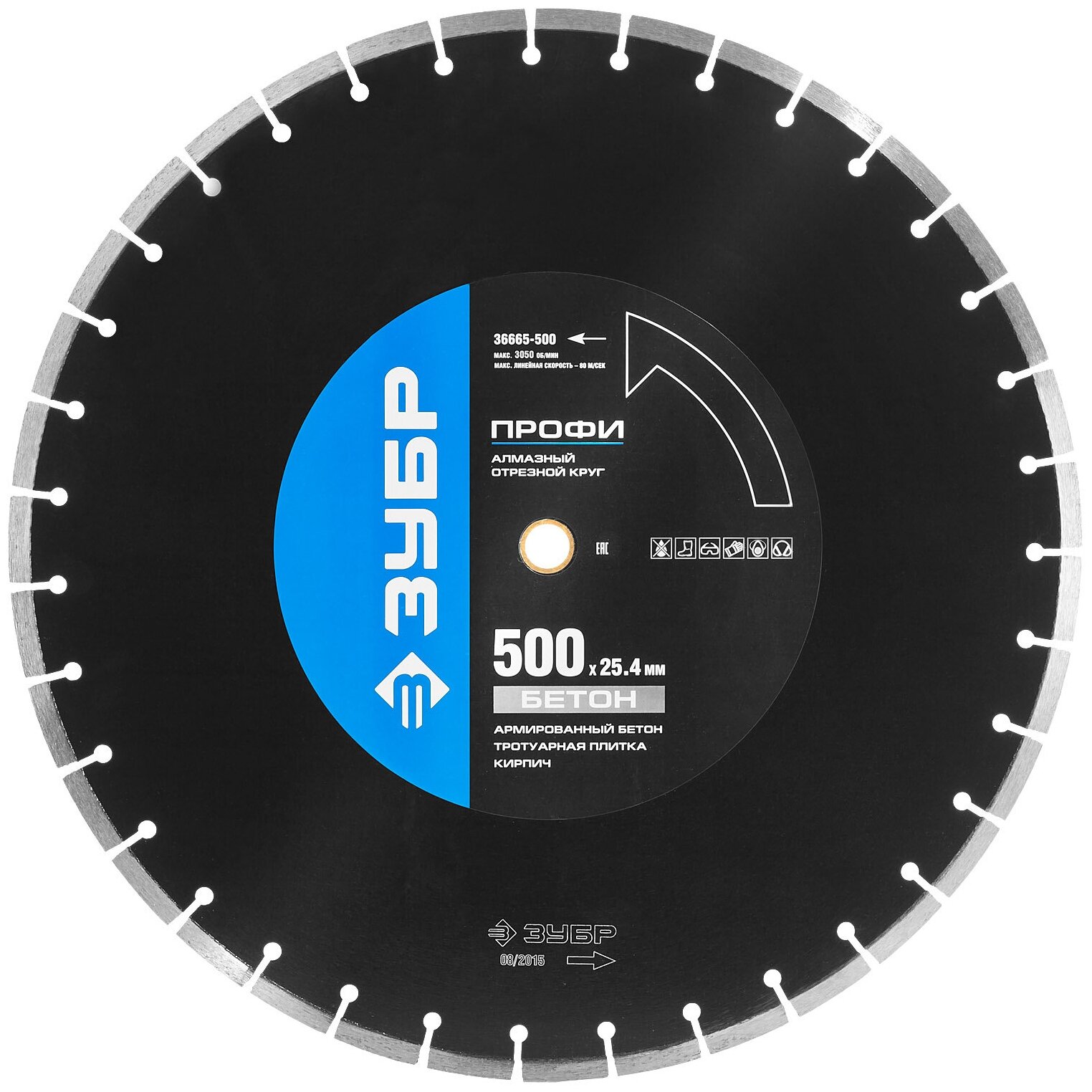 Бетонорез 500 мм, диск алмазный отрезной по бетону и камню, ЗУБР Профессионал 36665-500_z01