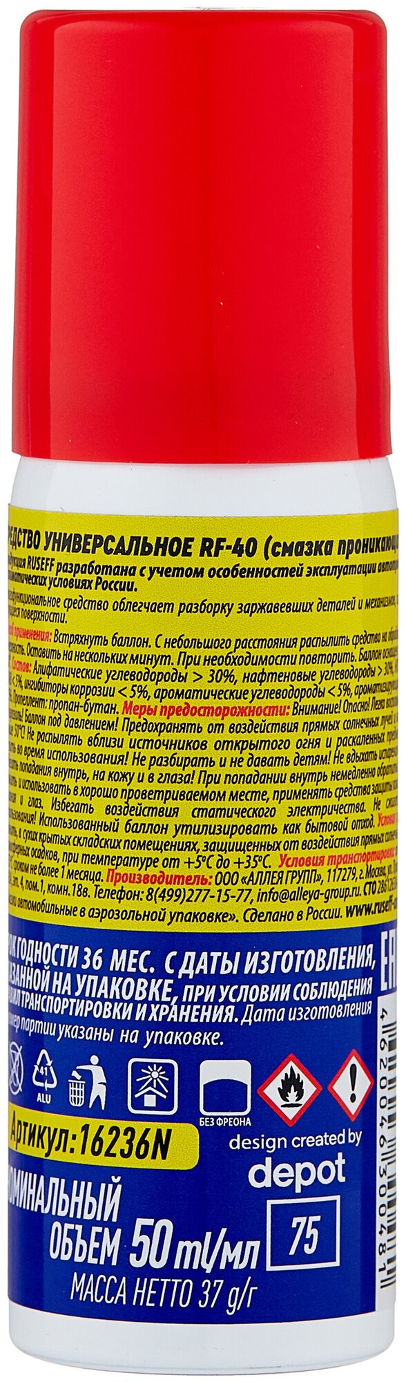 Универсальное средство RF- 40 50 мл (аэрозоль/баллон 75 мл) RUSEFF, арт. 16236N
