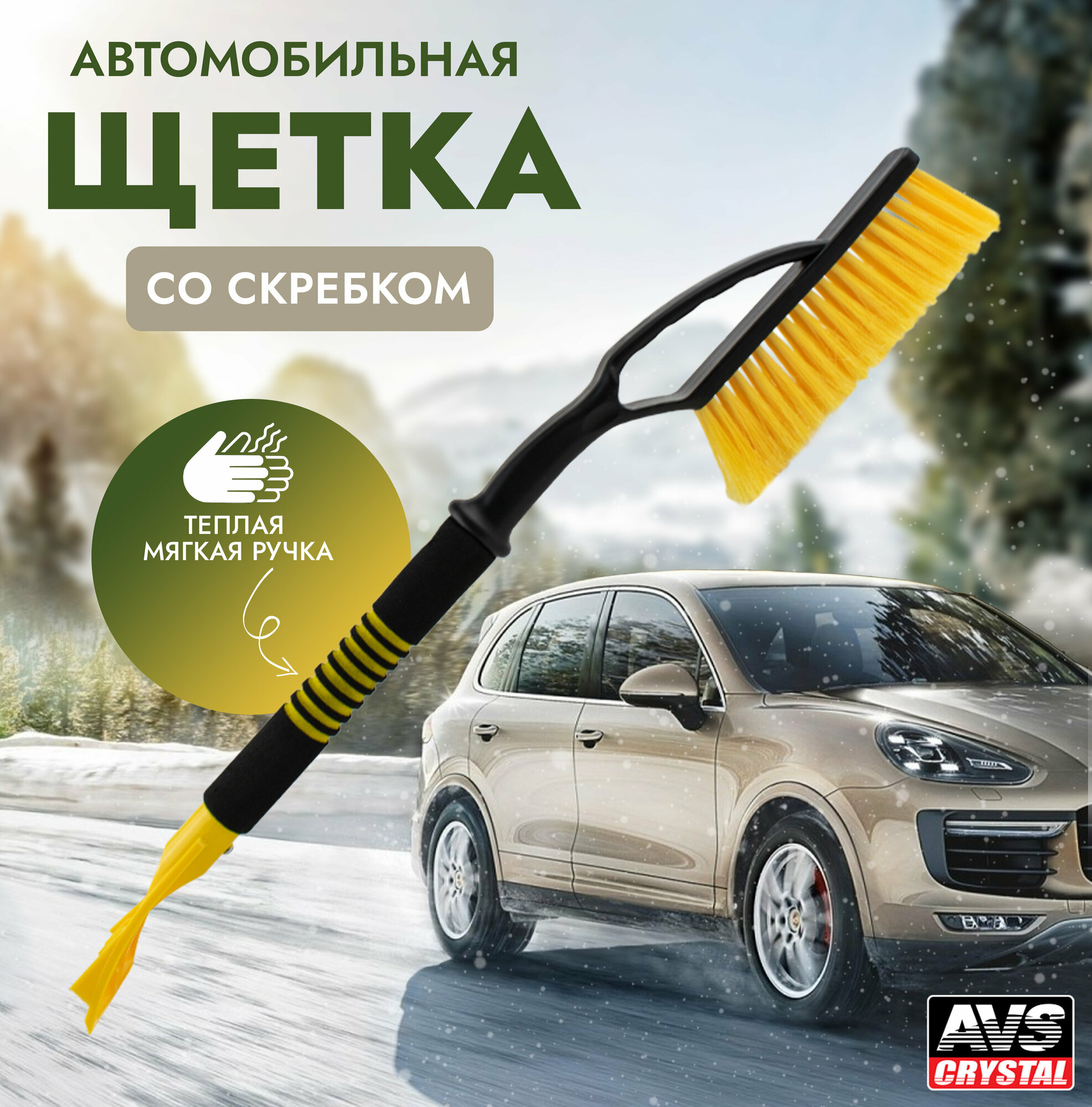 Автомобильная щетка для снега со скребком AVS WB-6312 (73 cм), мягкая ручка, распушенная щетина.