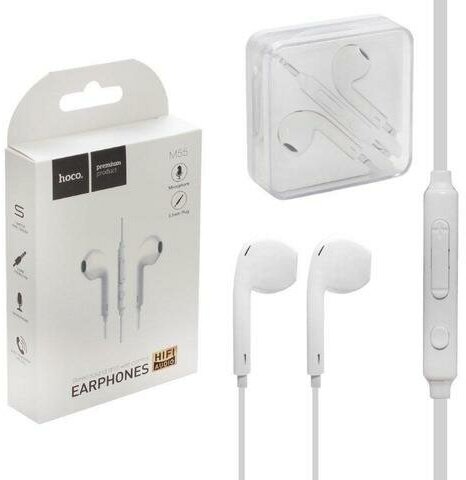 Hoco Наушники Hoco M55, проводные, вкладыши, микрофон, Jack 3.5, 1.2 м, белые
