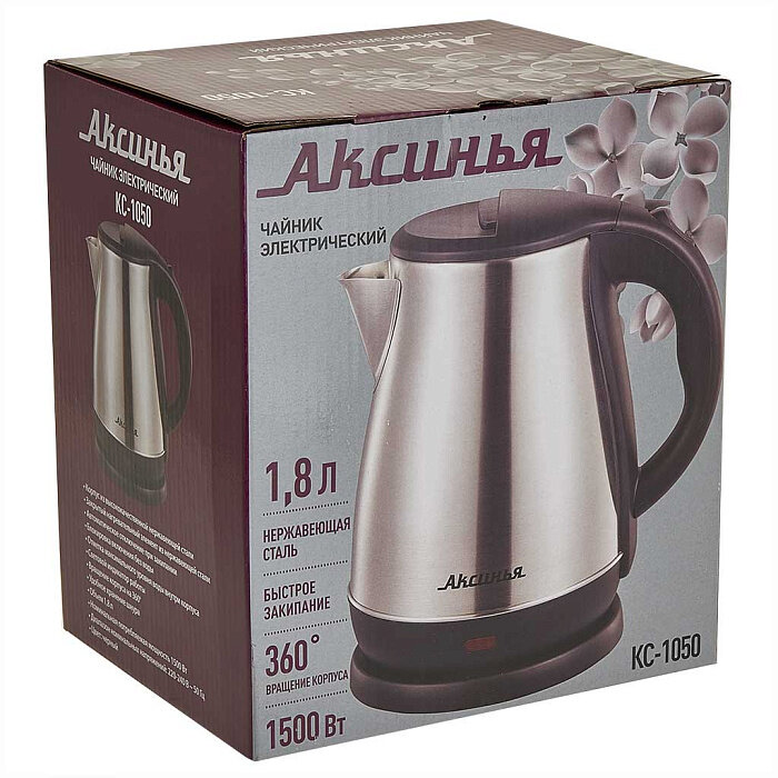 Чайник электрический Аксинья, КС-1050, чер, 1.8 л, 1500 Вт, ск нагр элем, нерж