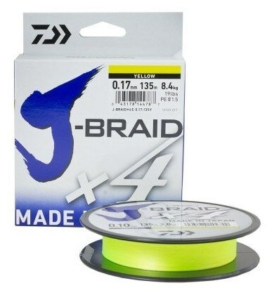 Плетёный шнур Daiwa J-braid X4 135м. 0.17мм. YELLOW