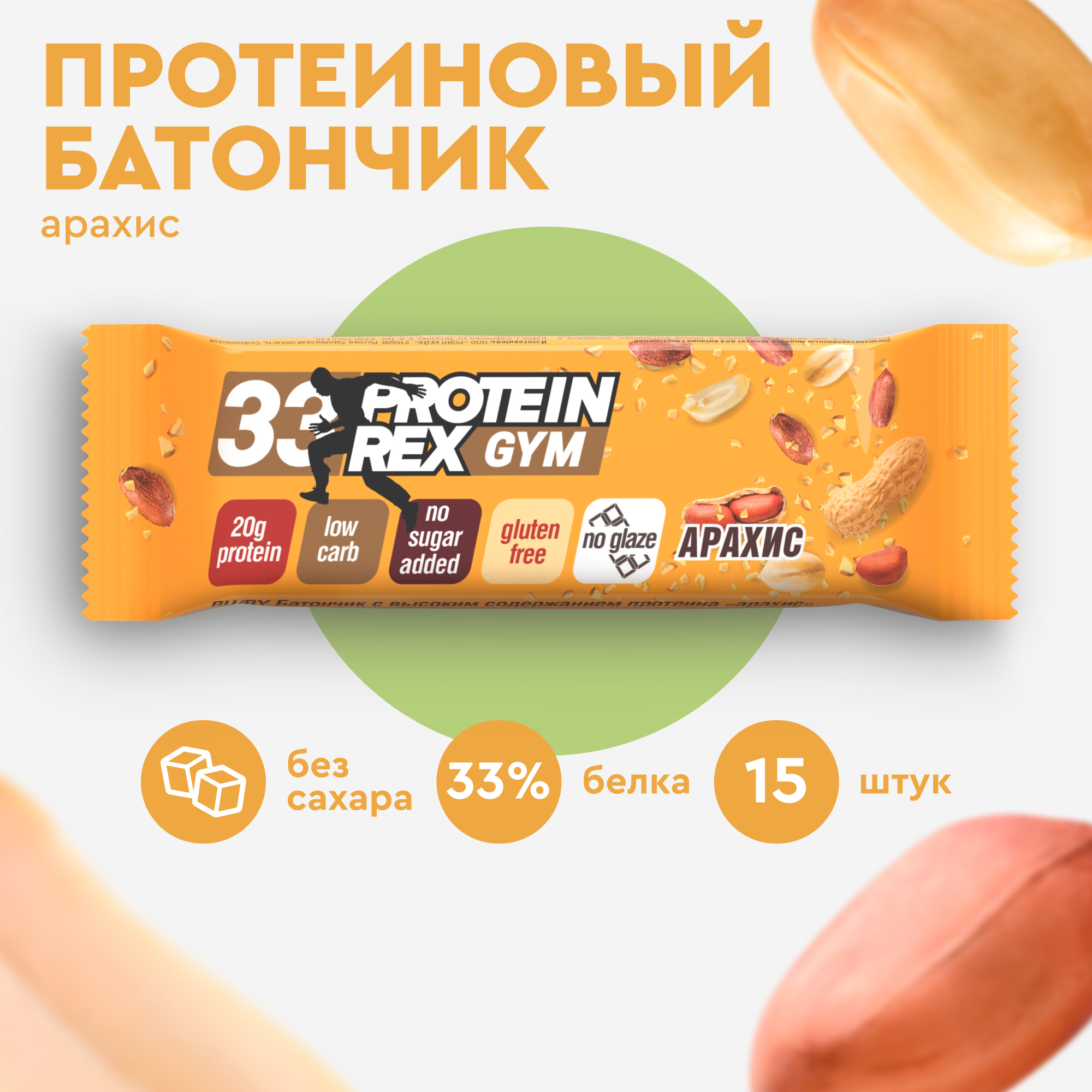 10 цен на Протеиновые батончики ProteinRex GYM Арахис 15 шт х 60 г без сахара, десерт, спортивное питание, ПП еда, спортивные батончики