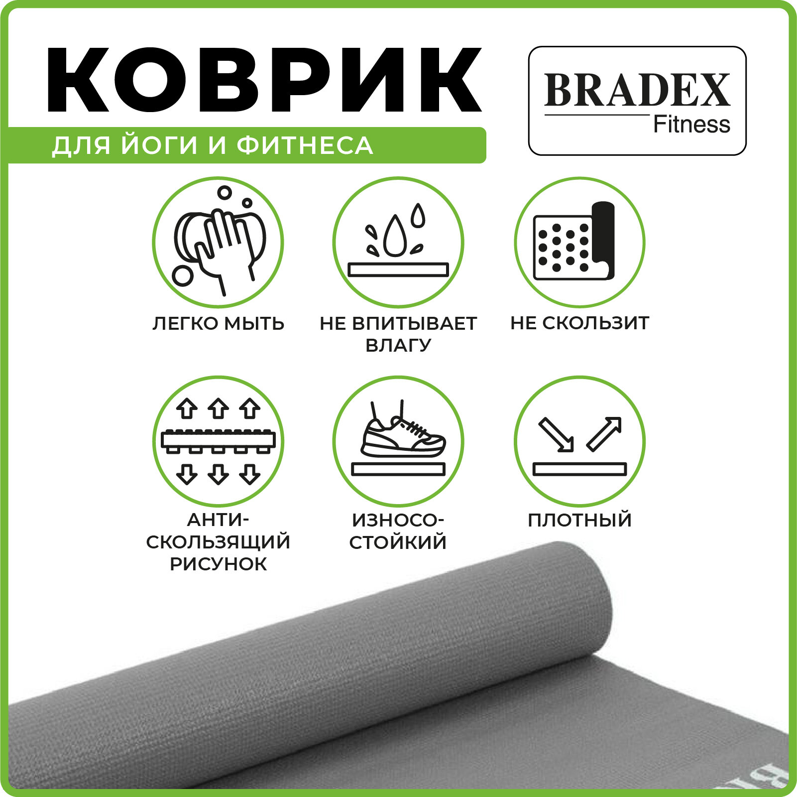 Коврик для йоги и фитнеса, Bradex (товары для спорта и отдыха, серый, 173 х 61 х 0,3, SF 0398)