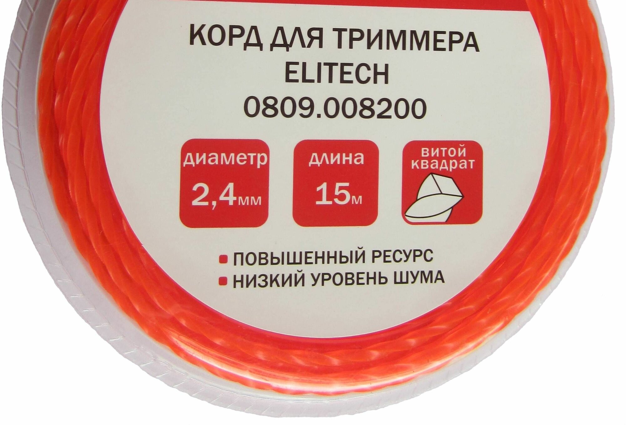 10 цен на Леска для триммера Elitech 0809.008200 2,4мм, 15м, витой квадрат, блистер