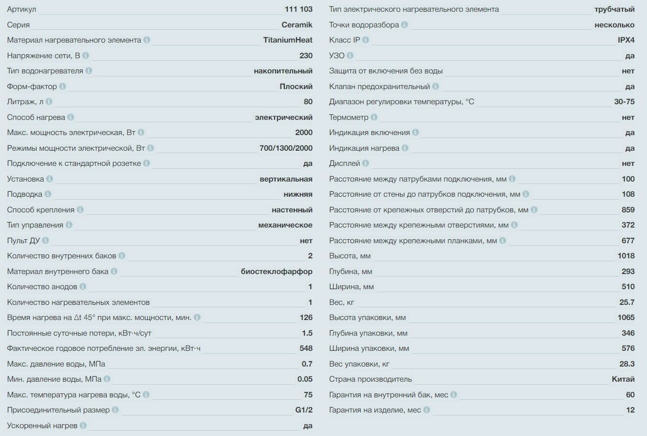 Аккумуляционный электрический водонагреватель Термекс Ceramik 80 V ЭдЭ001635 информация: