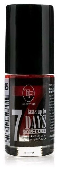 TF Cosmetics лак для ногтей 7 days Color Gel, 8 мл, №245 темно-красный