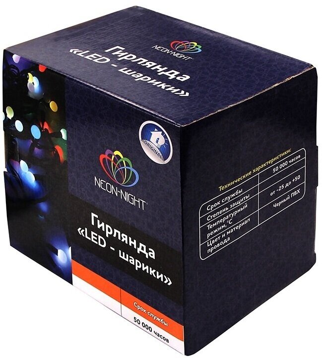 Светодиодная гирлянда Neon-night "Мультишарики" 10 м, диаметр 38 мм, 40 светодиодов, эффект смены цветов RGB, черный провод